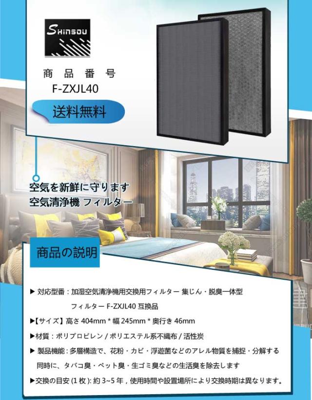 加湿空気清浄機用交換用フィルター 集じん・脱臭一体型フィルター F-ZXJL40 互換品 |