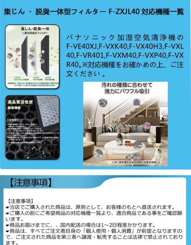 パナソニック Panaconic 互換品 F-ZXJL40 FZXJL40 加湿空気清浄機交換用集じん・脱臭一体型フィルター 集じん脱臭フィルター 空気清浄機交換用 集塵脱臭フィルター 1枚入り 互換品 非純正 FZXJL40