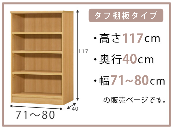 オーダー本棚 タフ棚板タイプ 幅71-80cm 奥行40cm 高さ117cm ( 収納棚 書棚 本棚 オーダー ラック 壁面収納 書庫 日本製 オーダーメイド 文庫本 コミック フリーラック )
