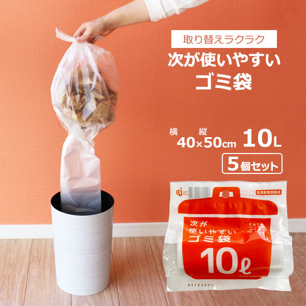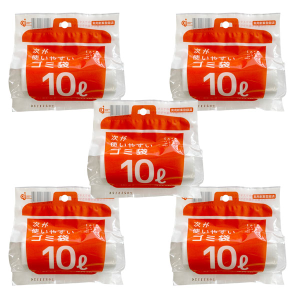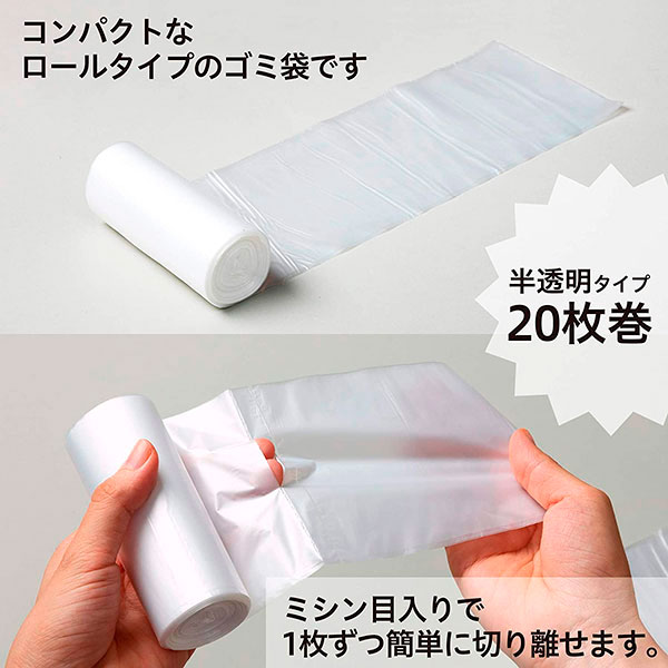次が使いやすいゴミ袋 10L 1ロール(20枚分)5個セット HD-504N | ごみ袋 ロール ポリ袋 半透明 レジ袋 ビニール袋 10L ミシン目カット 次が出てくる かさばらない コンパクト ラクに交換 使い捨て 消耗品