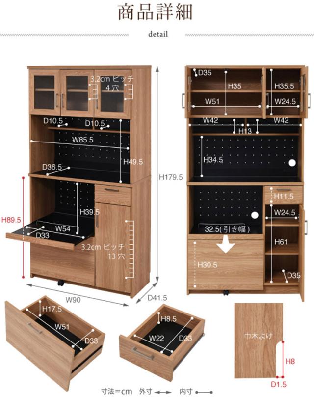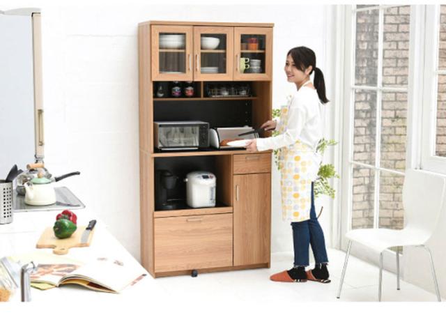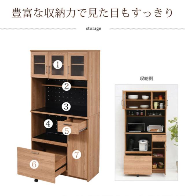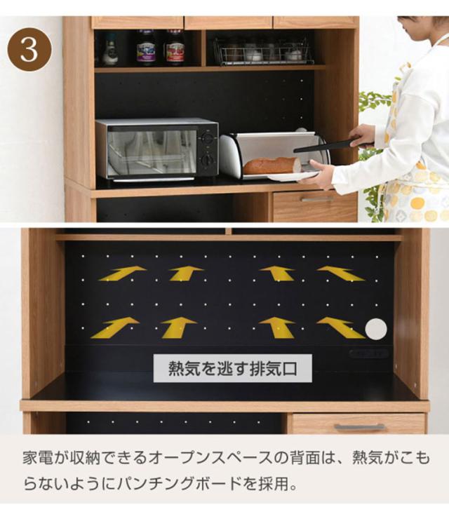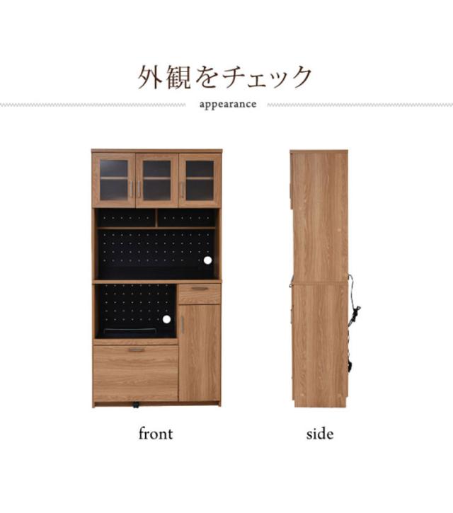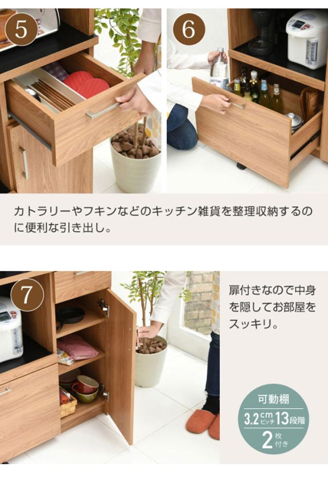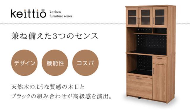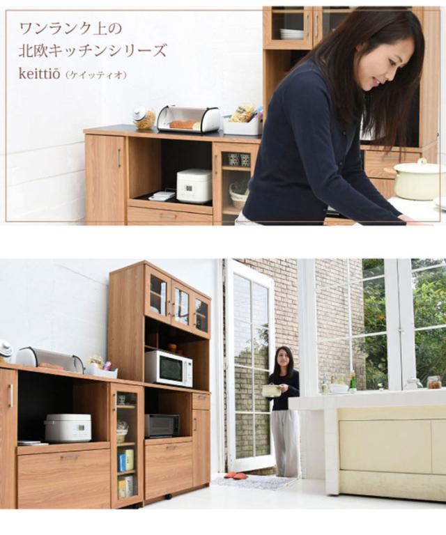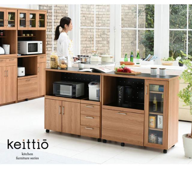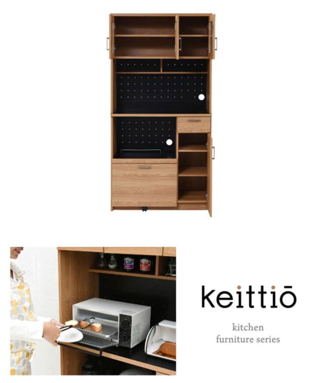 【スライド棚・コンセント付き】keittio(ケイッティオ) レンジボード FAP-0018 幅90cm 収納 キッチン 台所 ラック 棚 食器 キッチンラック ハイタイプ おしゃれ モダン 木製 キャビネット ストック ストック収納 収納家具