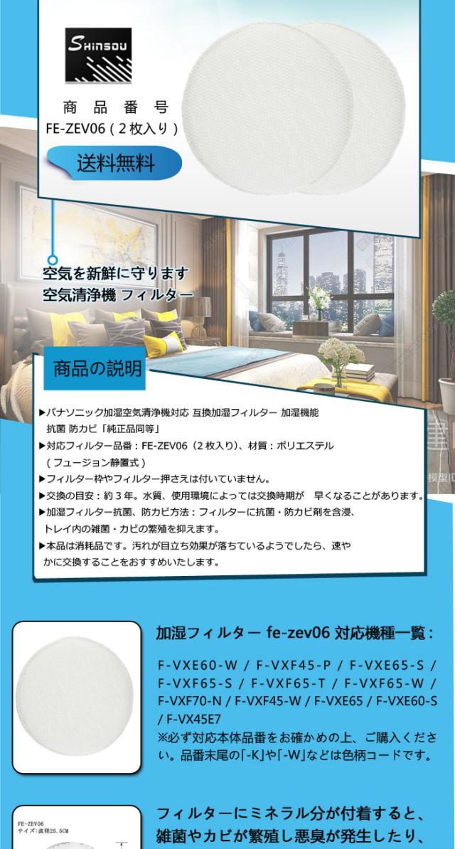 パナソニック FE-ZEV06 加湿フィルター Panasonic加湿空気清浄機 交換用 空気清浄機 フィルター fe-zev06 2枚入り 互換品