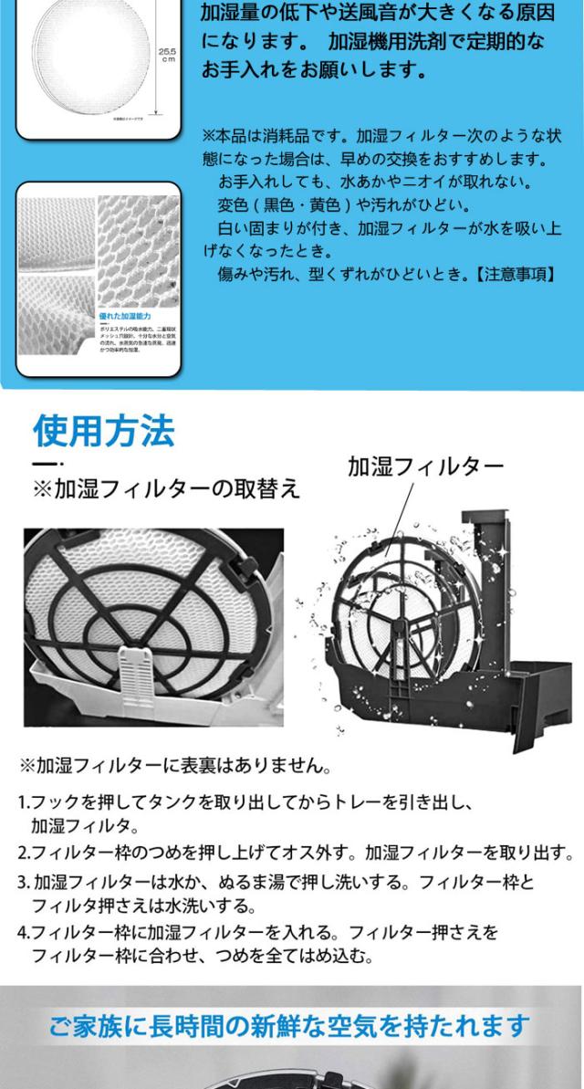 加湿フィルター抗菌、防カビ方法: フィルターに抗菌・防カビ剤を含浸、 |