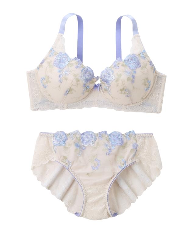 [keyword] 下着 ランジェリー インナー 大きいサイズ レディース 標準サイズ 普通サイズ ゆったりサイズ プラスサイズ デザイン 柄系 おしゃれ グラマーサイズ Fカップ〜 アンダーの大きなサイズ 85cm〜 レース付き 脇 背中すっきり [comment] 胸元に咲く大きく豪華なフラワー刺しゅうが印象的なブラジャー・ショーツセット。