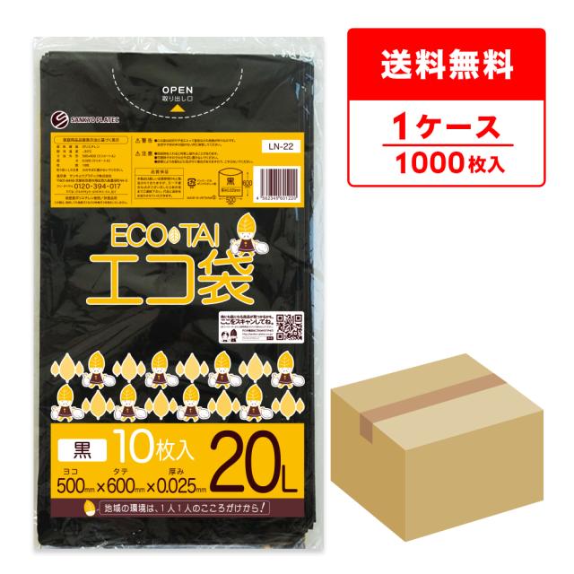 LN-22 ポリ袋 20リットル 0.025mm厚 黒 10枚x100冊 / ゴミ袋 ごみ袋 送料無料