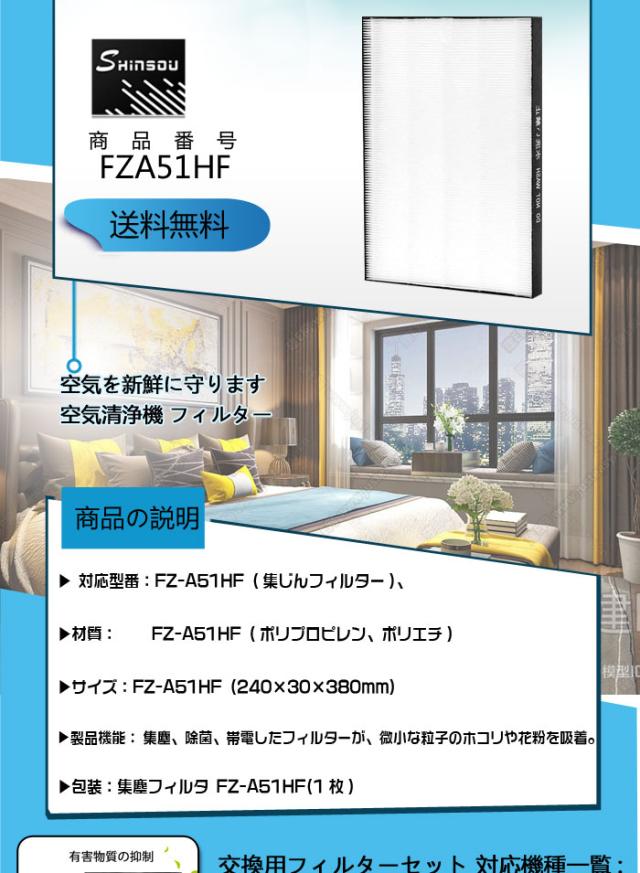 「最新改良版」集じんフィルター 制菌HEPAフィルター FZ-A51HF