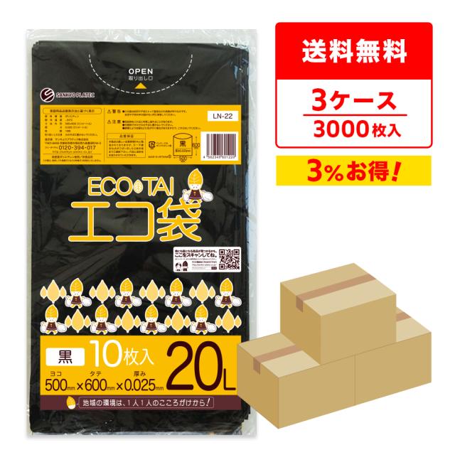 【まとめて3ケース】LN-22-3 ポリ袋 20リットル 0.025mm厚 黒 10枚x100冊x3箱 / ゴミ袋 ごみ袋 送料無料