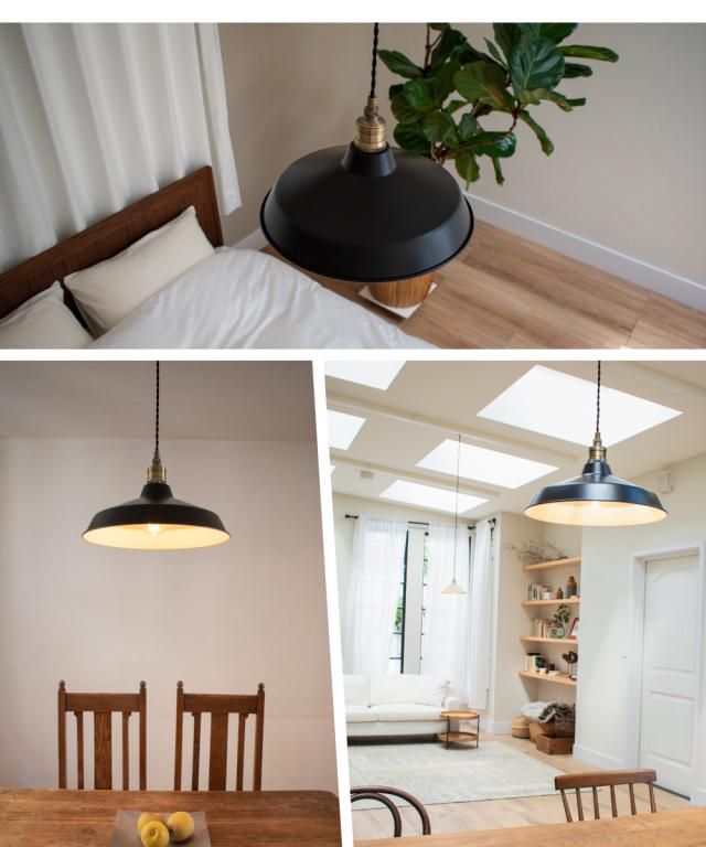 【Ampoule】 ランプシェード シェードのみ 傘 照明 おしゃれ ペンダントライト シーリングライト E26 1灯 アイアン ダイニング 玄関 カフェ 北欧 シンプル アンティーク ブラック 黒 LED セード 大きめ Delishca デリシュカ BK