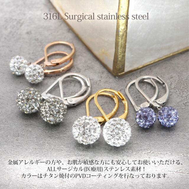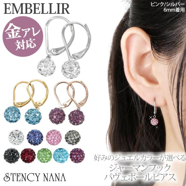 金アレ対応 [EMBELLIR] ステンレスピアス ジャーマンフックパヴェボールピアス 両耳用 フックピアス サージカルステンレス