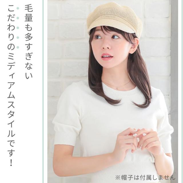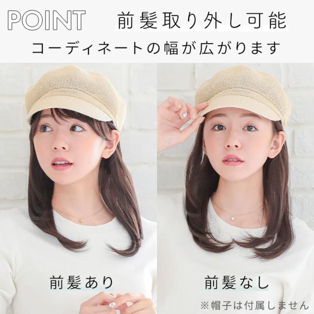 アクアドール 前髪取り外し式髪付き帽子ミディアムレイヤー人毛MIX[wgn017]