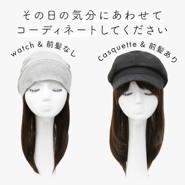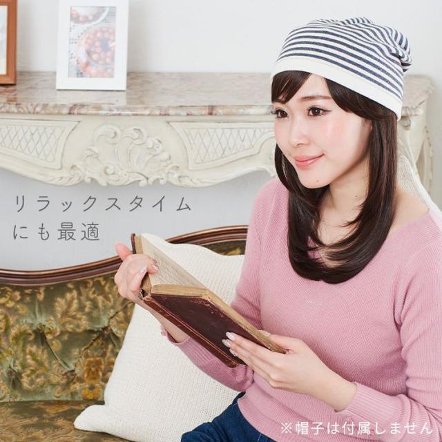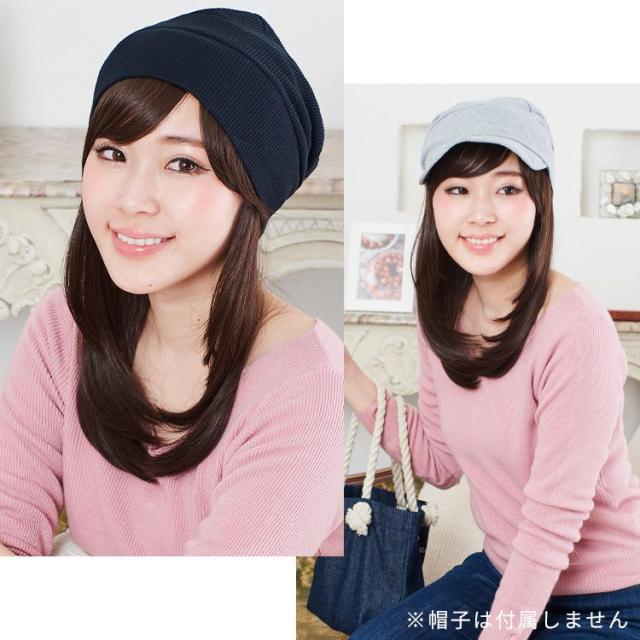 フルウィッグをお休みしたい時、コンビニや、近くのスーパーのお買い物など、近距離のお出かけにも便利な髪付き帽子です。
