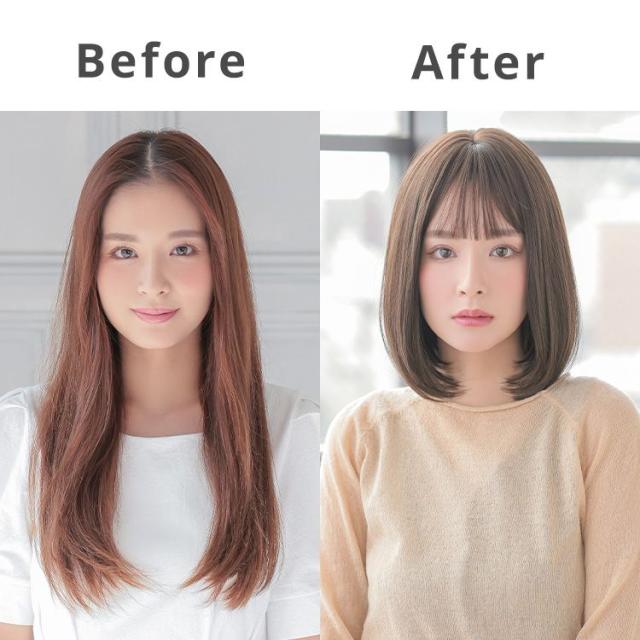 ・モデル着用ウィッグはモデルに合わせてブラッシング、若干のカット、整髪料を使用してのスタイリングを行っています。