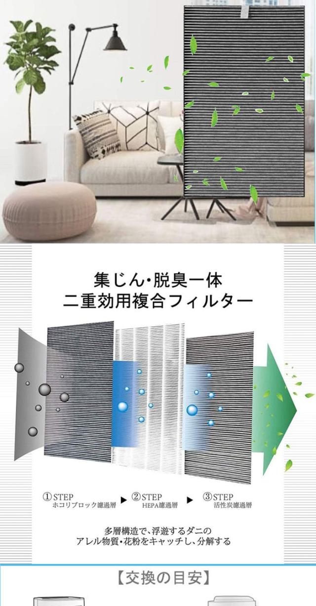 ◆【優秀な捕集機能】花粉やアレル物質(ダニのフン・死骸)、ウイルス、カビ菌/ホコリ チリ、タバコの煙(粒子)、ペットの毛などをカットできます。