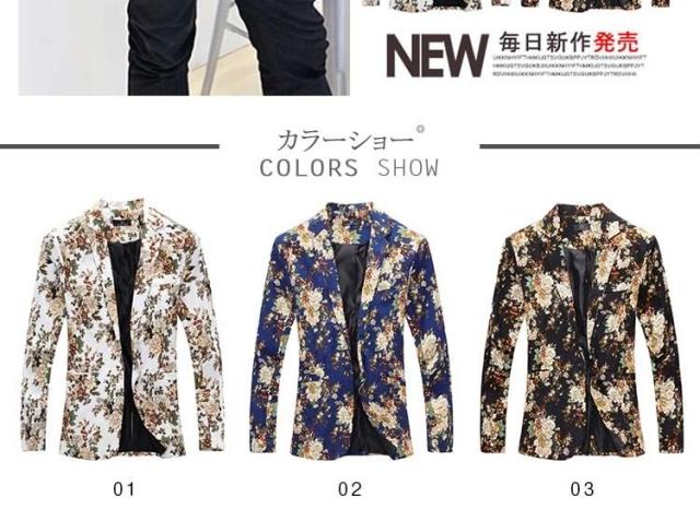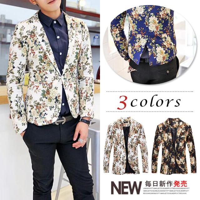 メンズ/アウター/ジャケット/ブレザー/スーツ/長袖/テーラード/スリム/フィット/コットン/花柄/フリース/メンズファッション