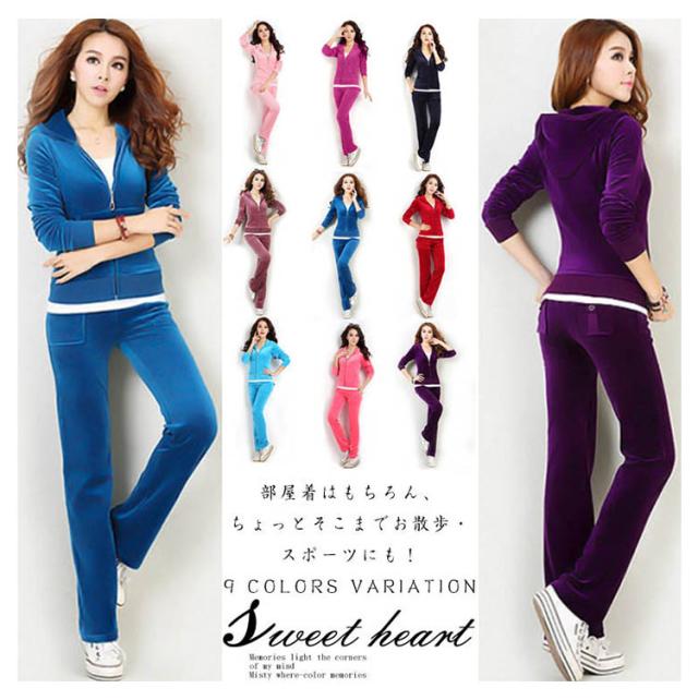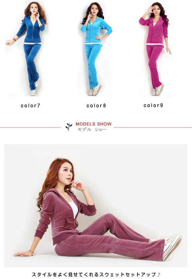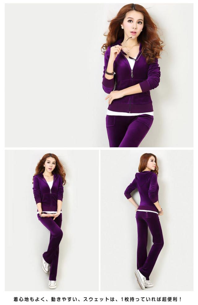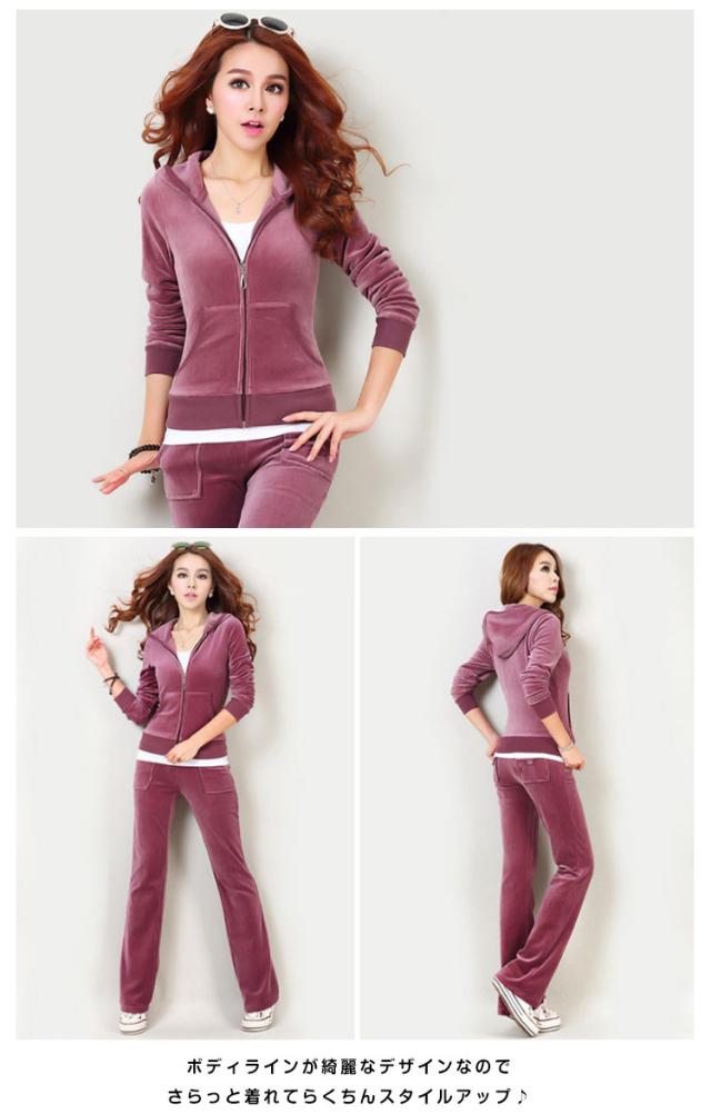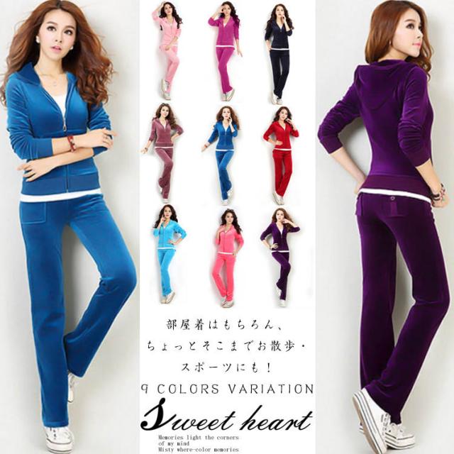 ベロア調がキュート!レディース 2点セット スウェット ジャージ ルームウェア 上下セット セットアップ 運動着 スポーツウエア 長