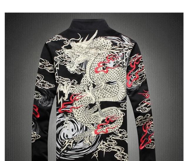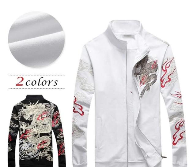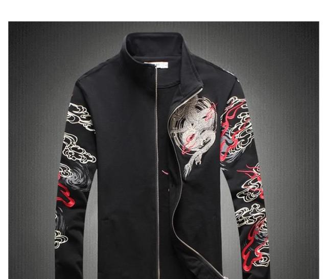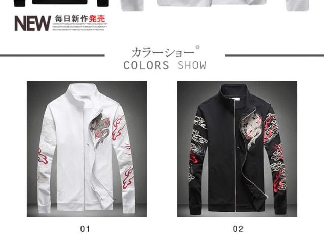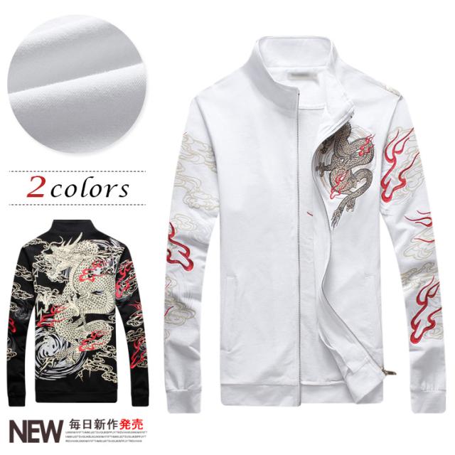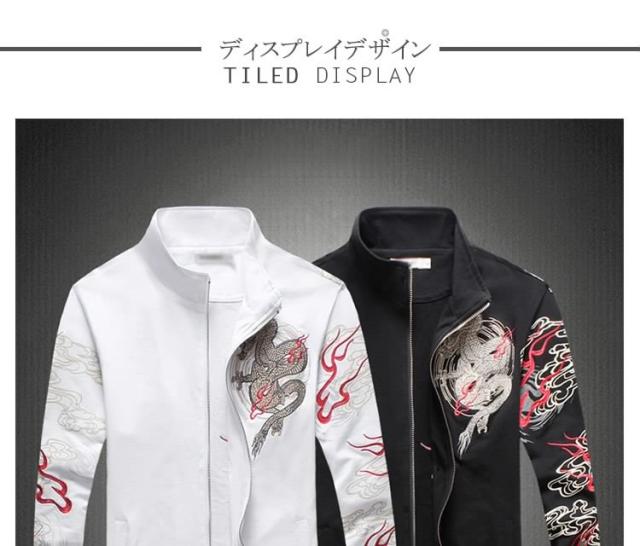 2018秋冬 新作 メンズ ブルゾン ジャンパー コート アウター 龍柄 秋 防風 立ち襟 スリム 大きいサイズ
