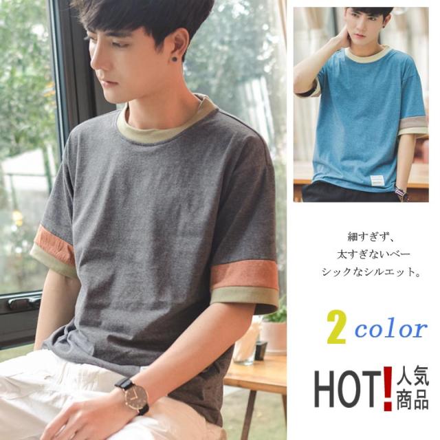 無地 Tシャツ メンズ 夏 半袖 トップス 丸首