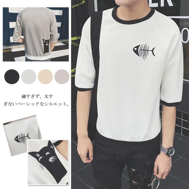 柄 Tシャツ メンズ 夏 半袖 トップス 丸首