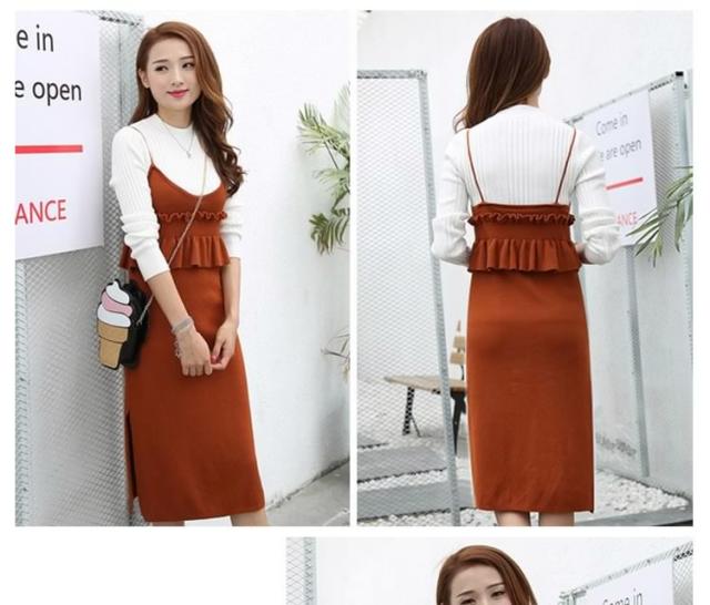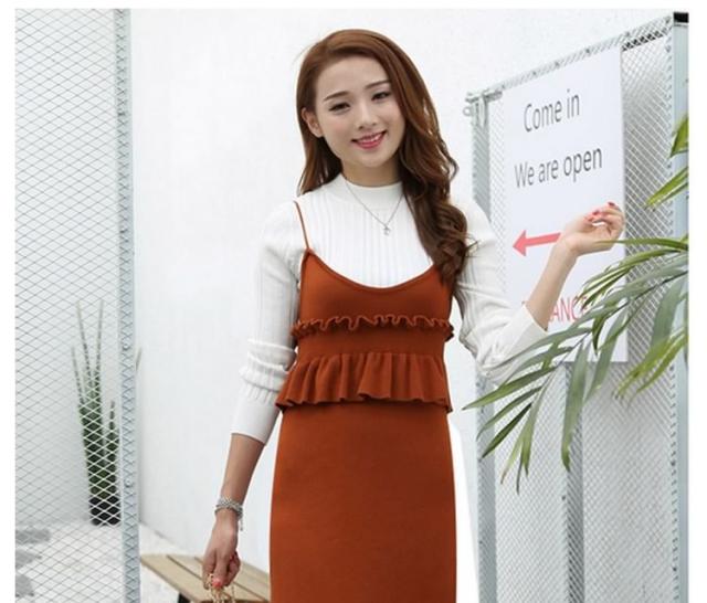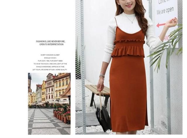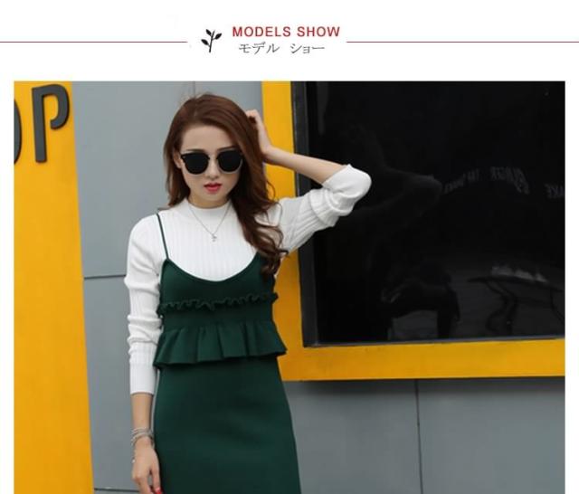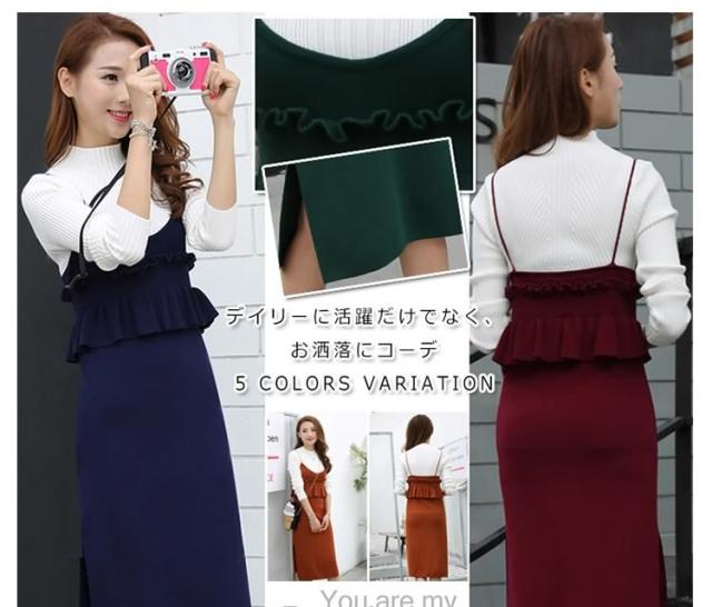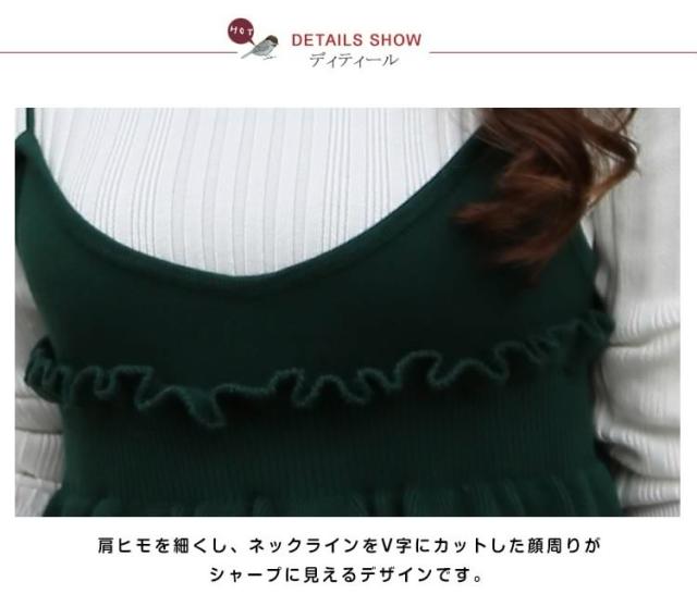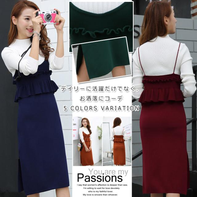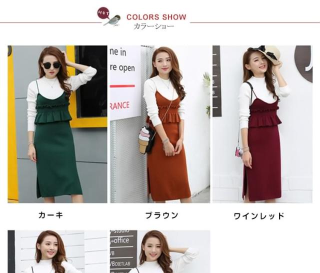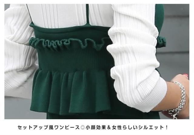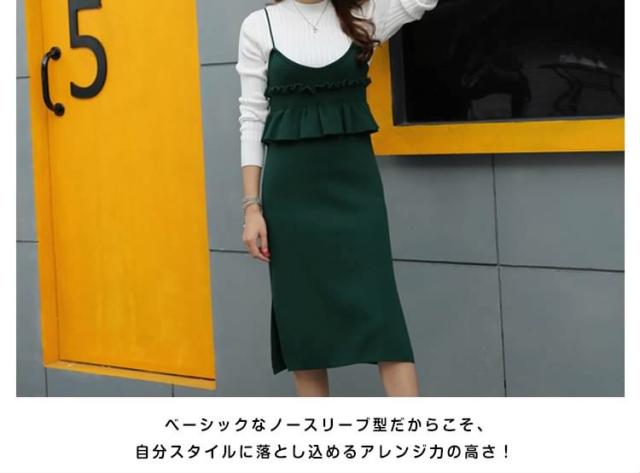 セットアップ風 ニット ワンピース ノースリーブ ニット キャミソールワンピース キャミワンピース レイヤード 重ね着 シンプル 秋 冬 レ