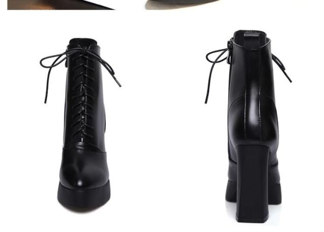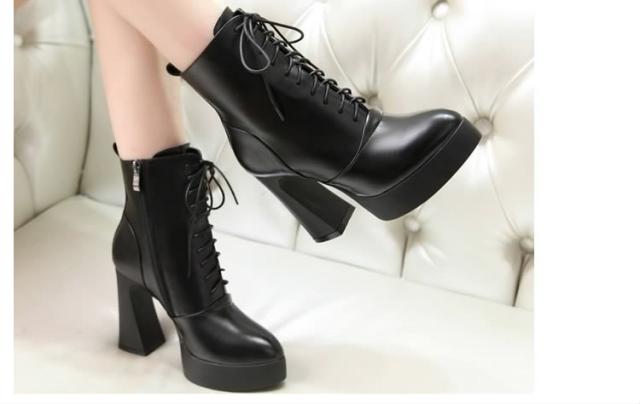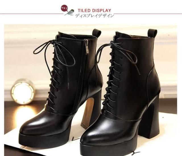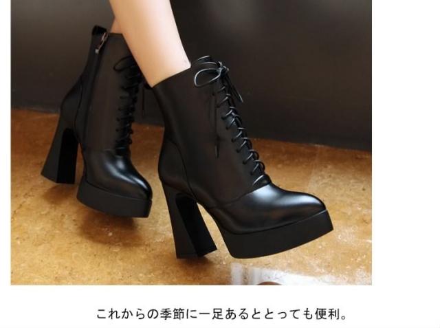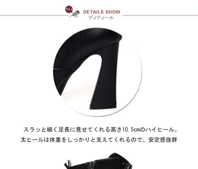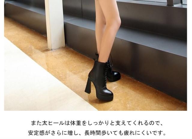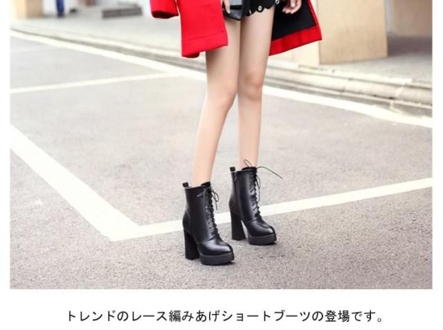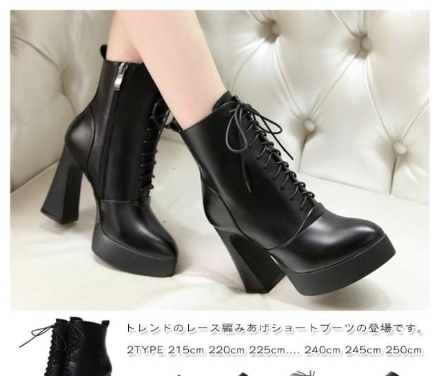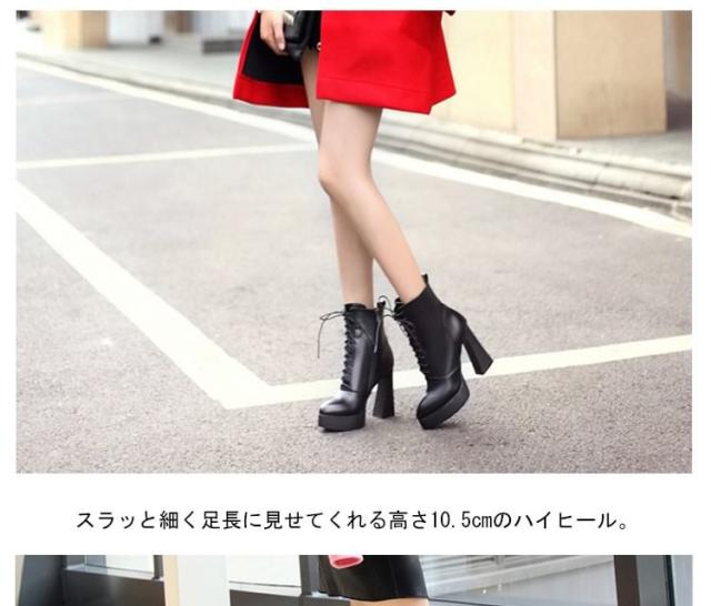 脚長&美脚効果10.5cmヒール!編み上げ ショートブーツ ヒール シューズ ブーツ 黒