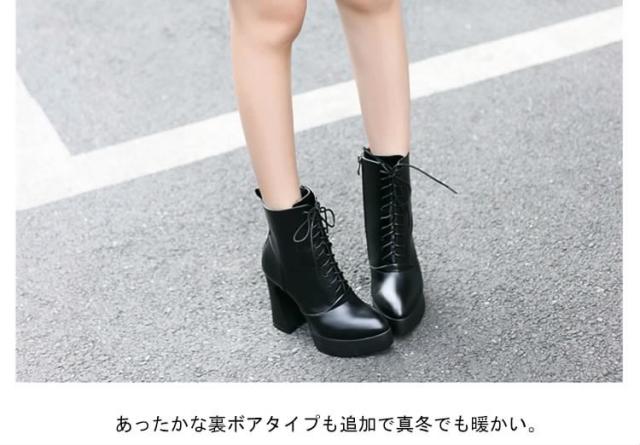 冬ブーツ レースアップ ショートブーツ 編み上げブーツ ミドルブーツ レディース ブーツ ショート ハイヒール 太めヒール 裏起毛
