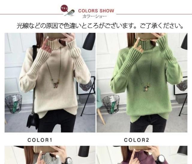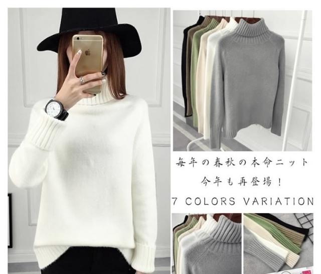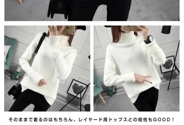 タートルニット トップス 無地 シンプル タートルネック レディース アクリル ざっくり