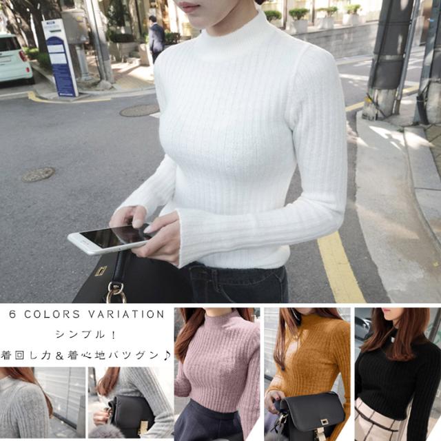 着回し力抜群!ニット ボトルネック リブニットトップス 長袖 ハイネックニット リブ編み ボトルネックニット リブニット ハイネ