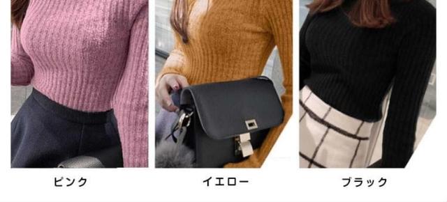 ニット レディース トップス ボトルネック 長袖 無地 シンプル