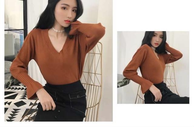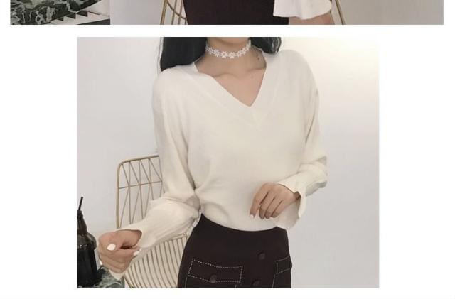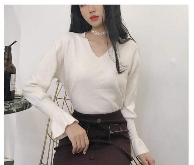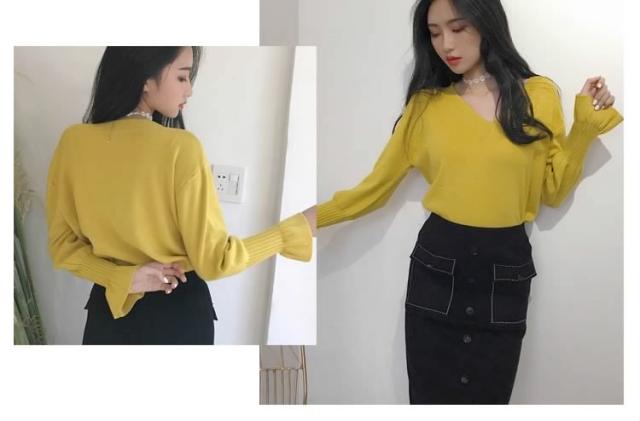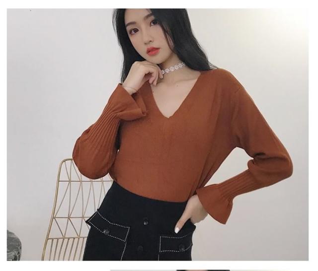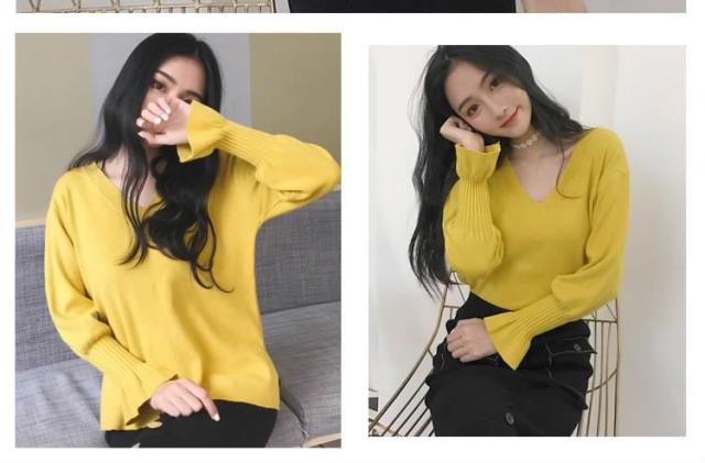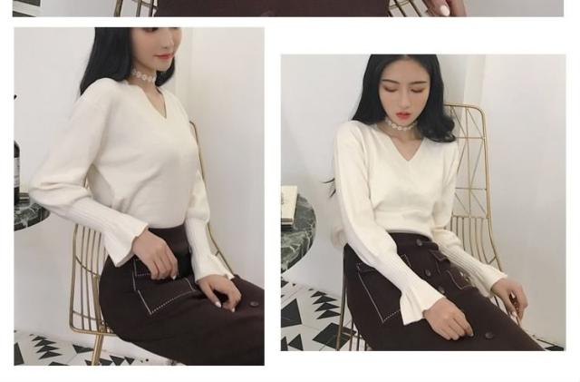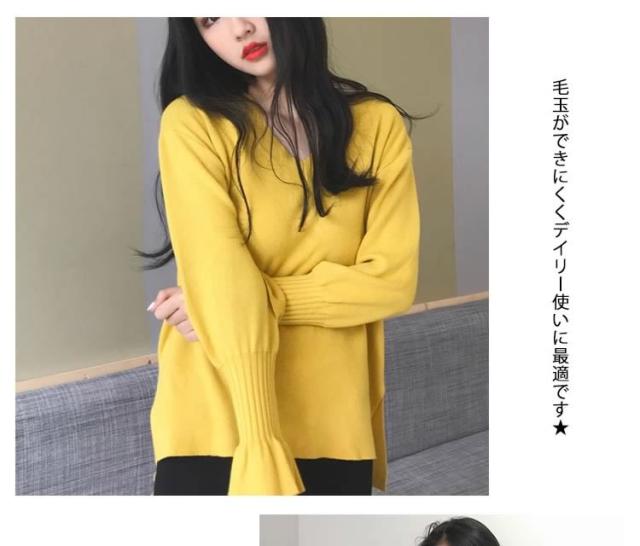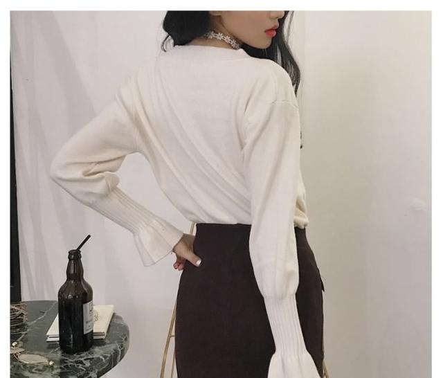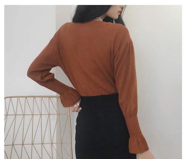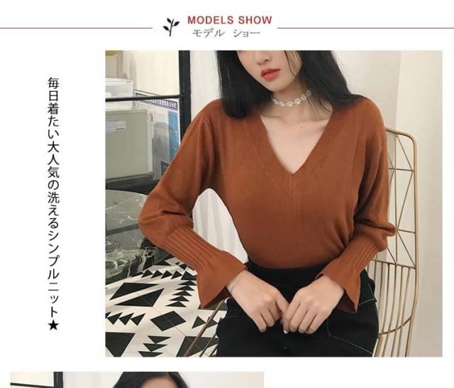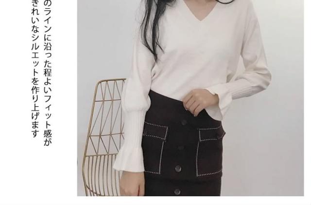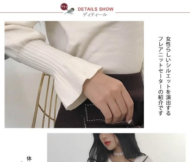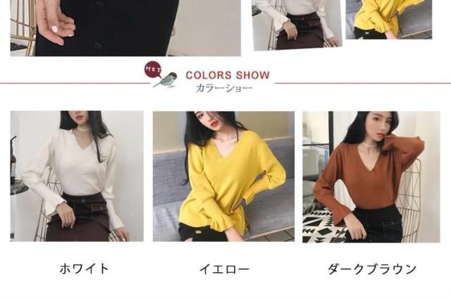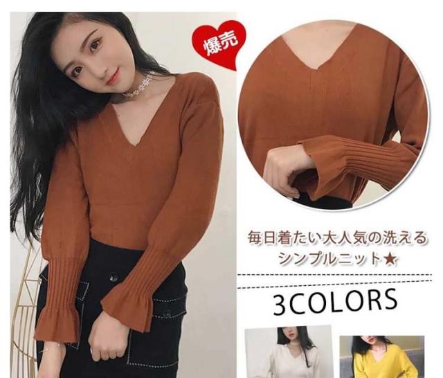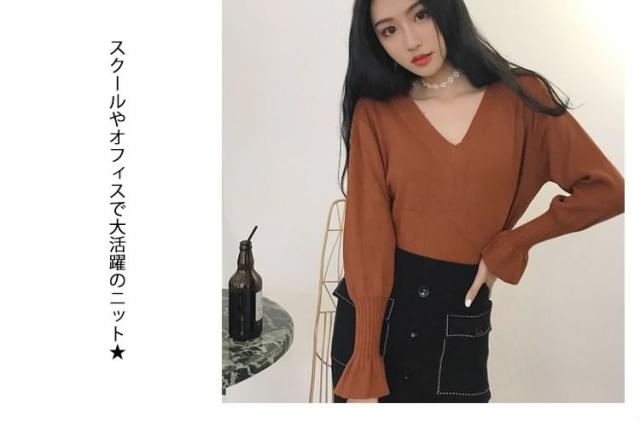 送料無料ニット/レディース/ニットセーター/ケーブル編みニット/プルオーバーニット/上着/トップス/Vネック/フレア袖/ショート丈/秋冬/長