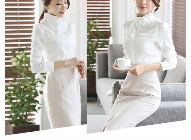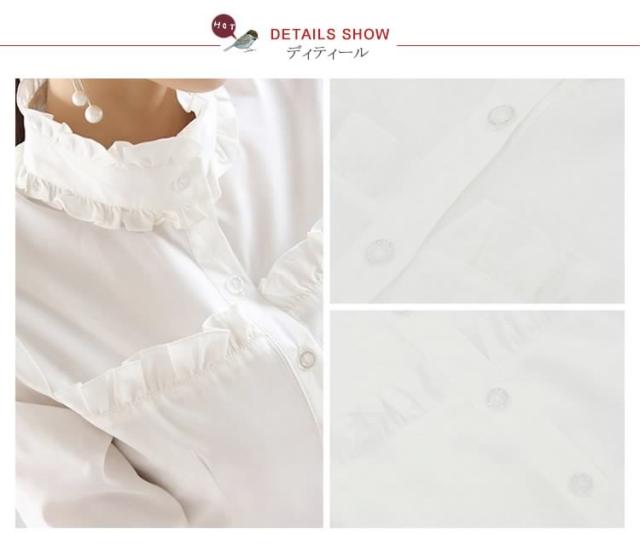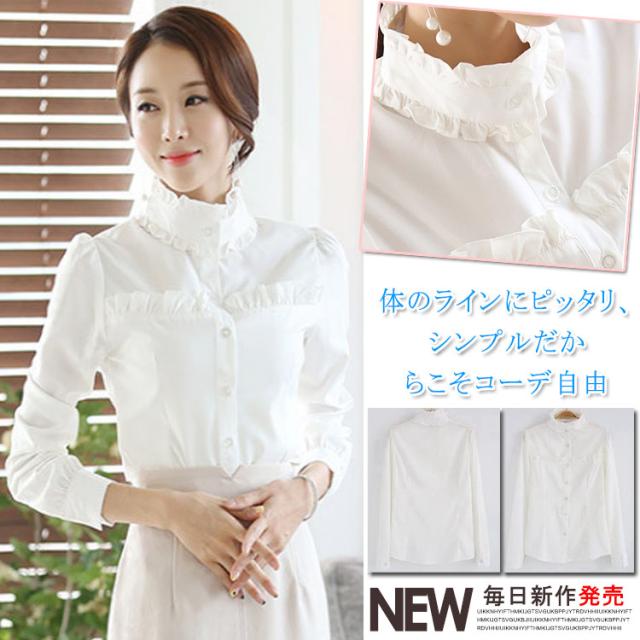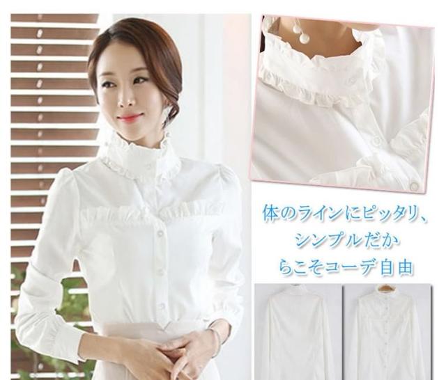 シャツ フレア ブラウス 長袖 オフィス ビジネス OL 上品 ベーシック 通勤 就活 ホワイト 美ライン シンプルスリム フォーマル コーデ セ