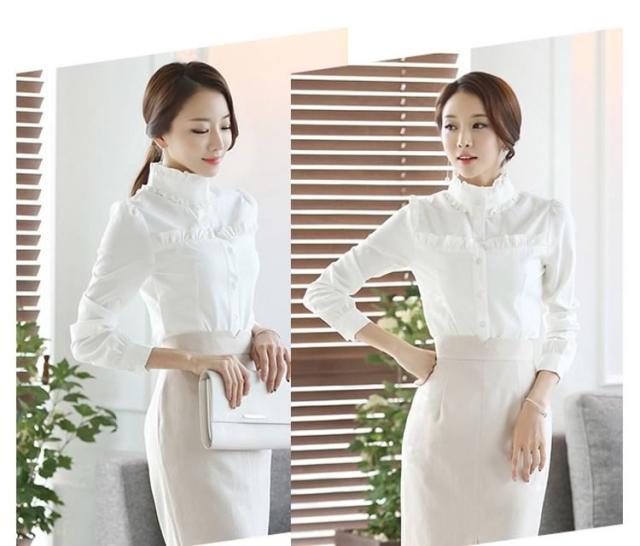 シャツ フレア ブラウス 長袖 オフィス ビジネス