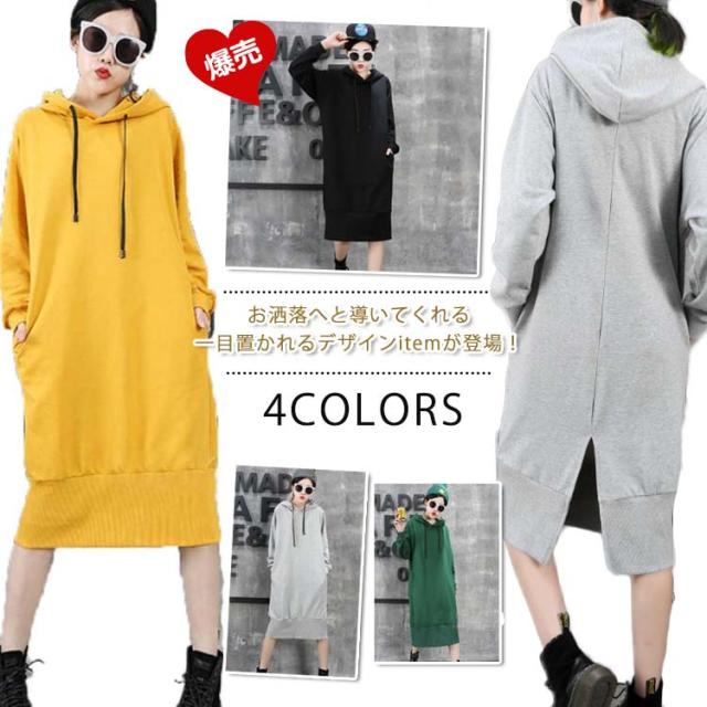 スウェット トレーナー ロング丈 パーカーワンピース パーカワンピース プルオーバーパーカー ワンピース プルオーバーパーカ ワンピース