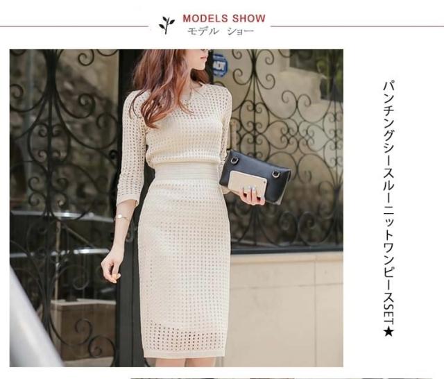 | パンチングシースルーニットワンピースSET★着心地バツグン、毎日でも着ていたい至福の心地よさをご提供いたします♪ シンプルデザインだから着回しがきき、秋冬コーデのベースになる頼れる一枚です♪ | |