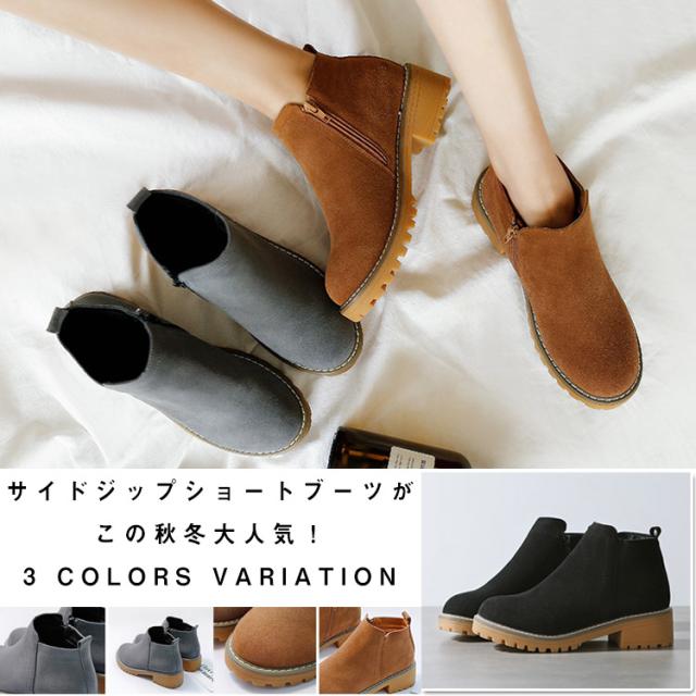 サイドジップ ショートブーツ ジッパー スウェード ブーツ マニッシュ ブーツ シューズ 靴 レディース