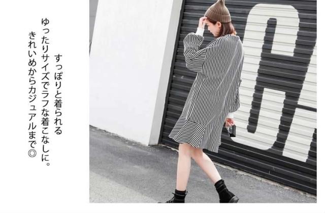 | シンプルデザインで幅広く使える。裾フレアワンピース◎すっぽりと着られるゆったりサイズでラフな着こなしに。きれいめからカジュアルまで◎1枚で着こなすのはもちちん、今年らしくレギンスやスキニーパンツと合わせるコーデもおすすめです。 | |