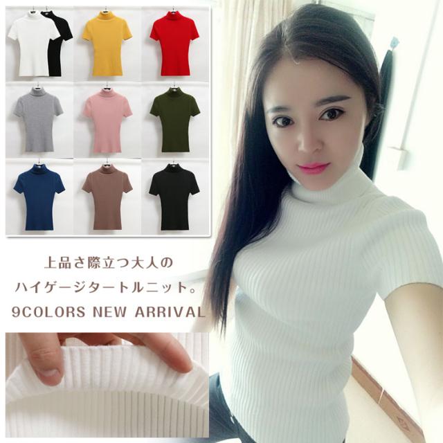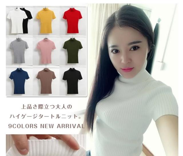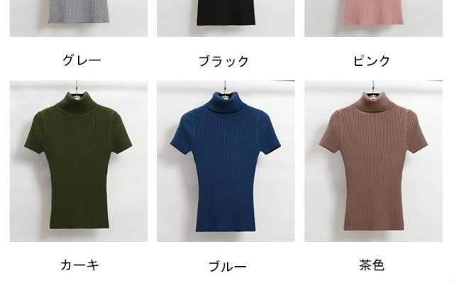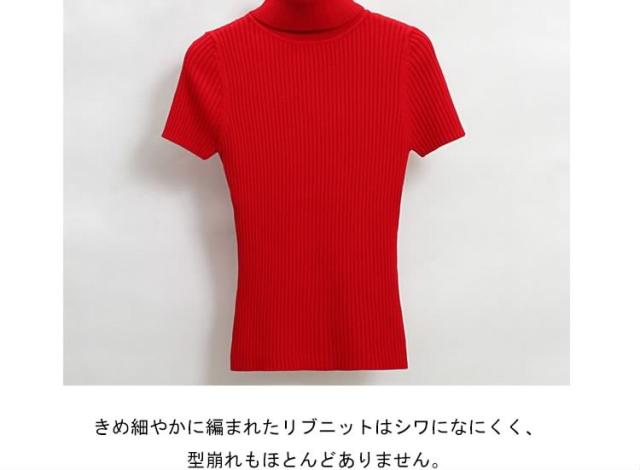 タートル×半袖は1枚でコーデが洗練された雰囲気に。タートルニット レディース 半袖ニット タートル ニットトップス リブ 半袖