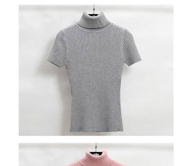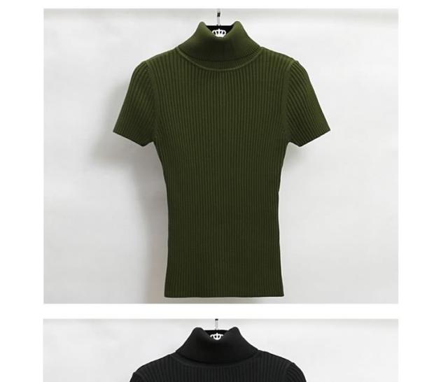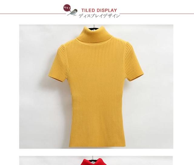 窮屈感ゼロ!春秋用 スリム タートル ニット プルオーバー トップス 半袖 ストレッチ ニットソー