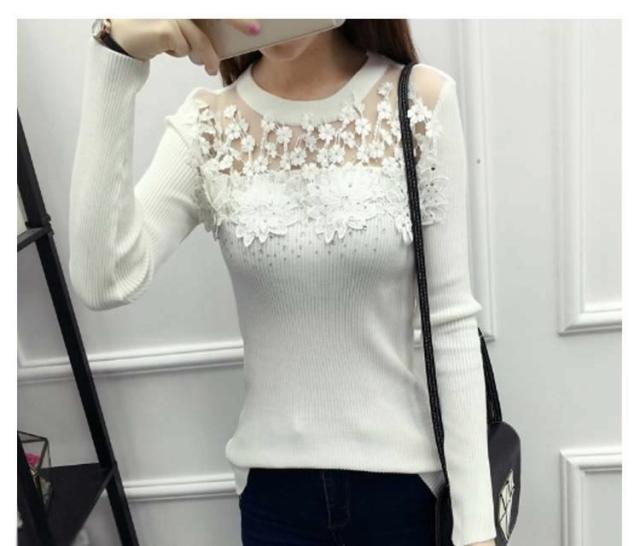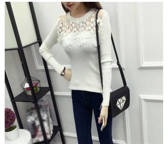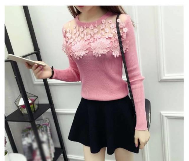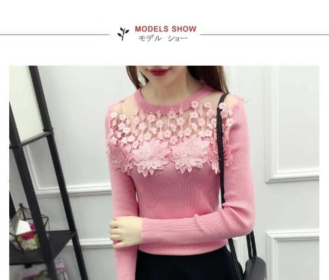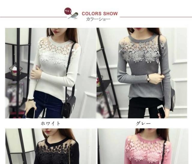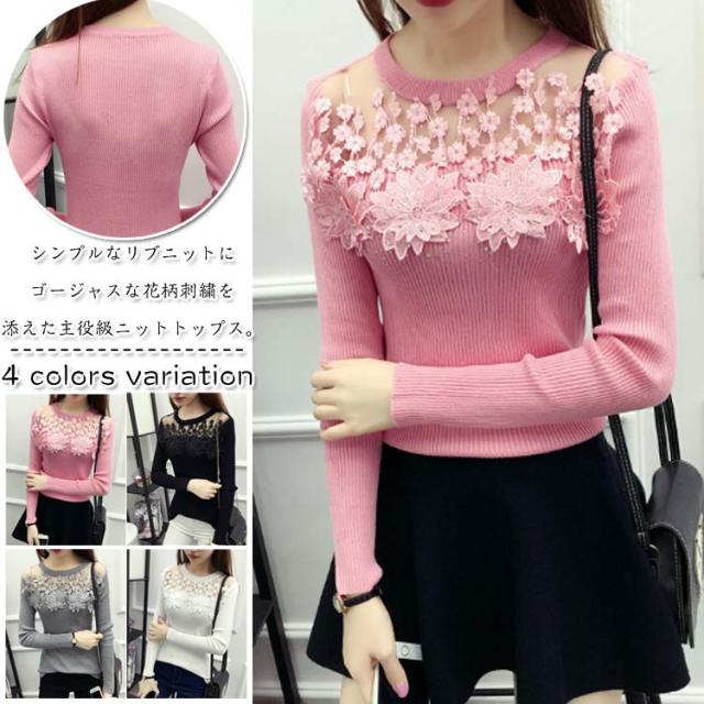 ニット トップス 刺繍 花柄 花柄刺繍 リブニット リブ素材 タイト レース シースルー 細見せ シンプル HS レディース 新作