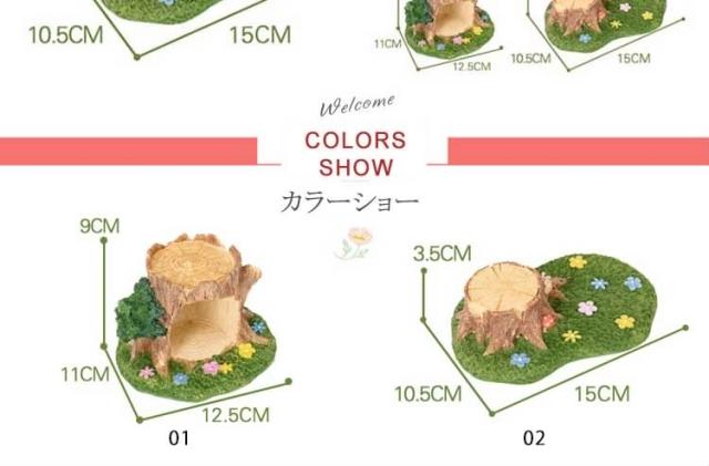 | まるで絵本の中から出てきたような小さなかわいい木の切り株の置物です。小さくてかわいいオブジェ!お部屋やお庭のインテリアに。プレゼント・ギフトにもおすすめです。 | |