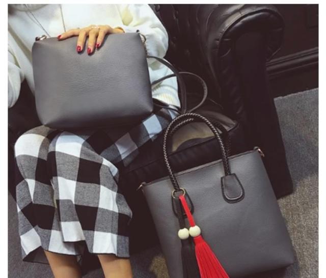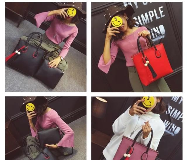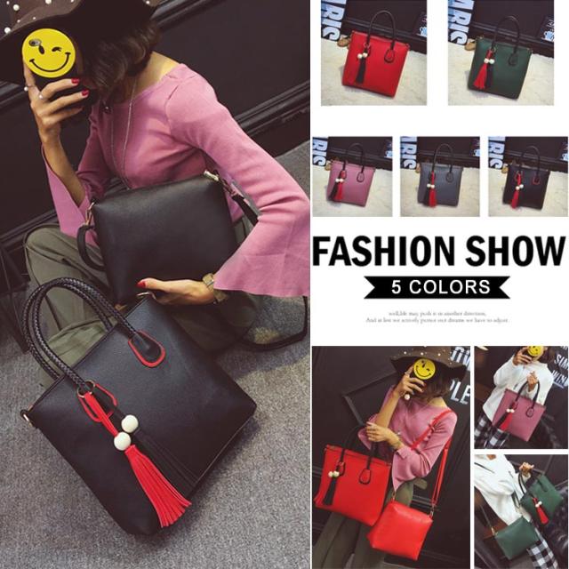 ショルダーバッグ レディース ミニバッグ 2点セット ポーチ タッセル チャーム付き 斜めがけ ビジネスバッグ ハンドバッグ 2way チャーム
