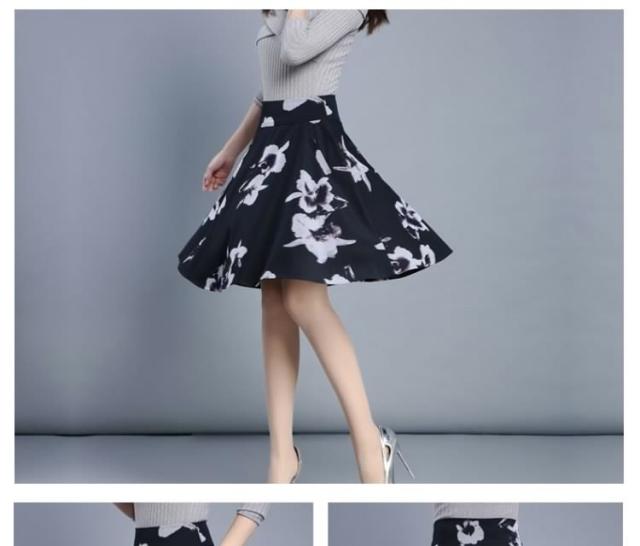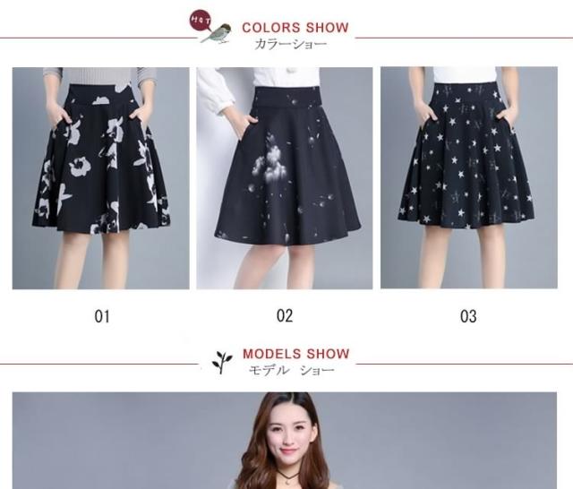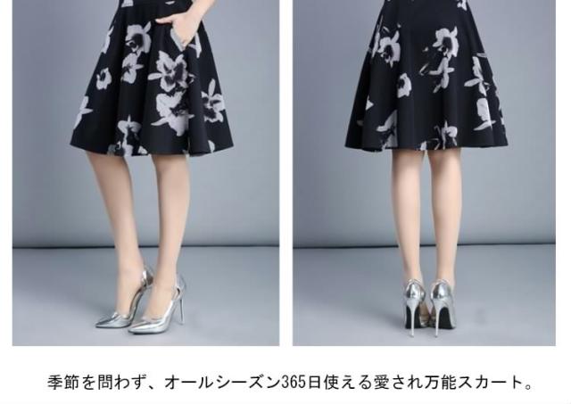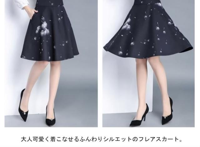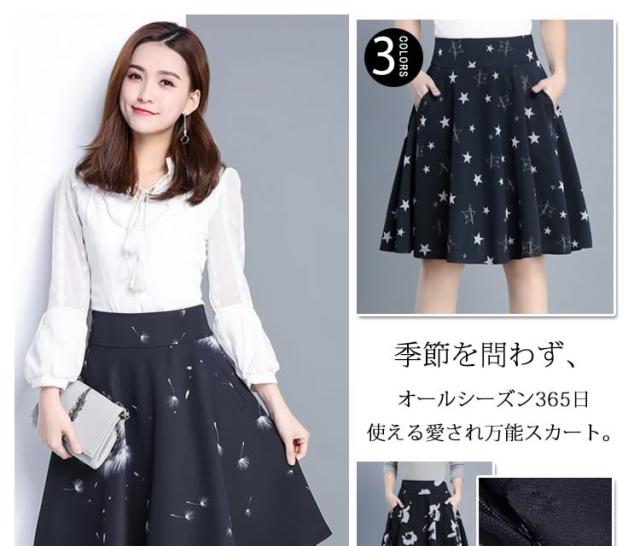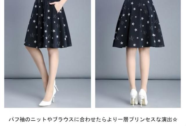 サーキュラースカート フレアスカート 花柄 Aライン スカート フラワープリント フレアスカート レディース スカート 膝丈 スター柄 フレ