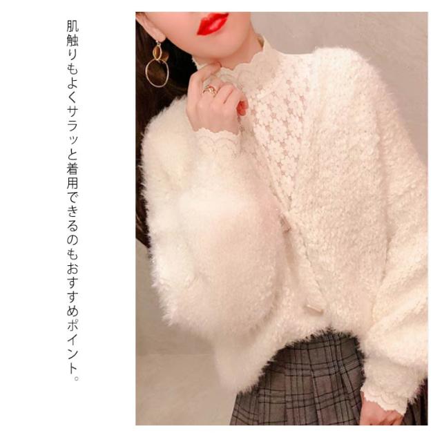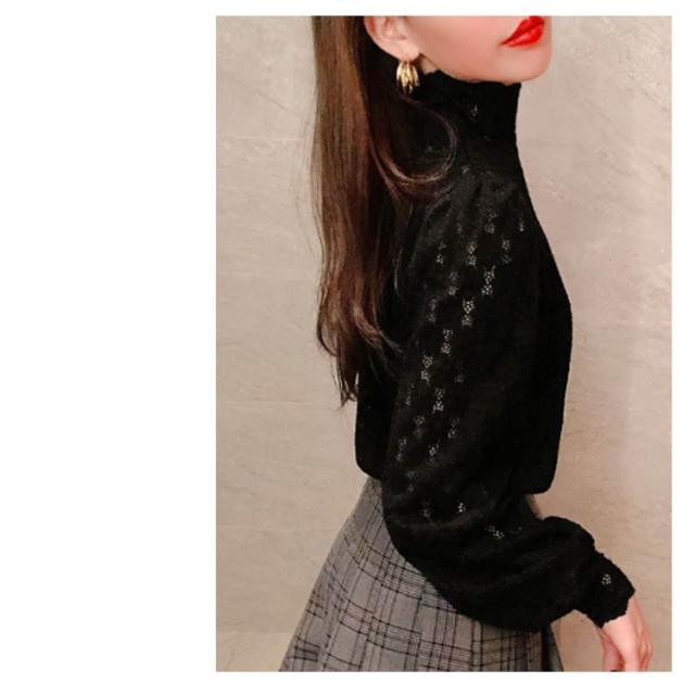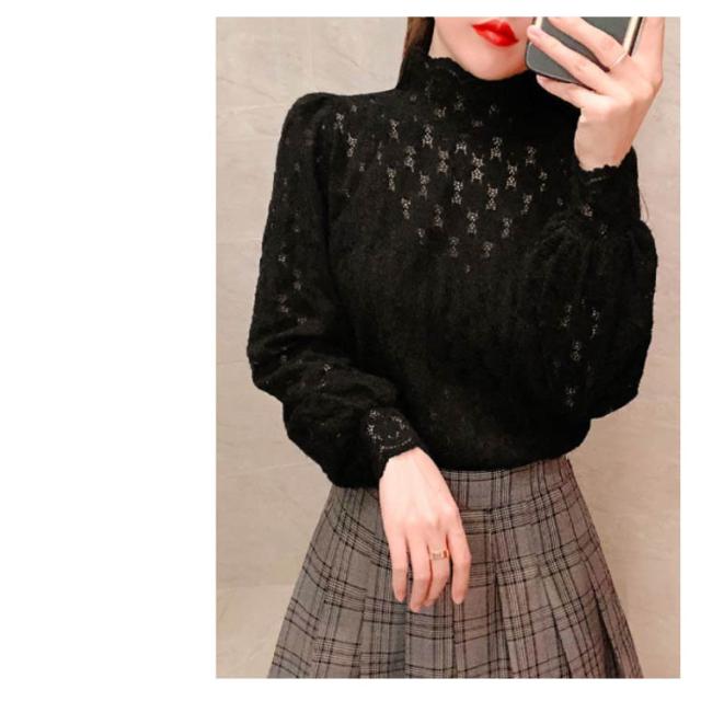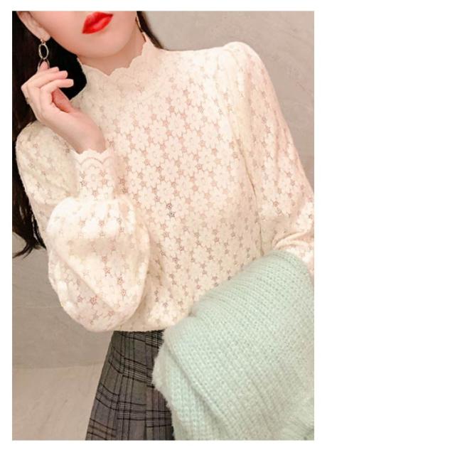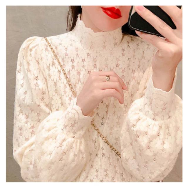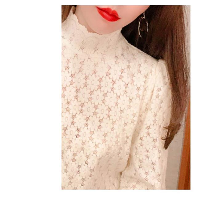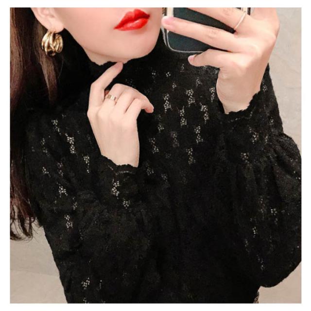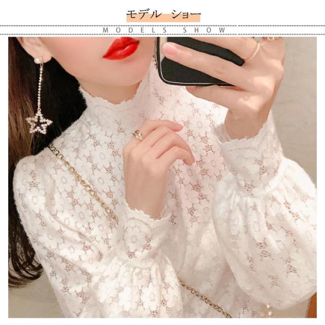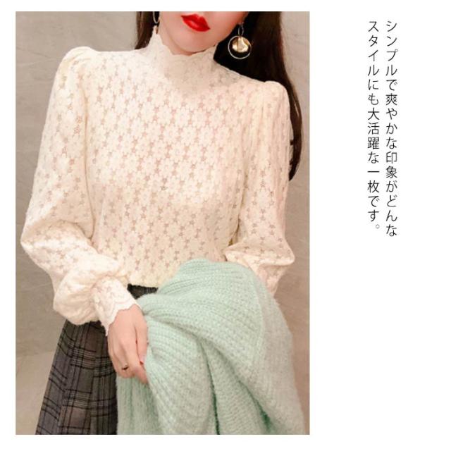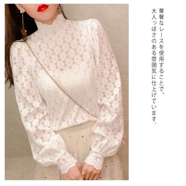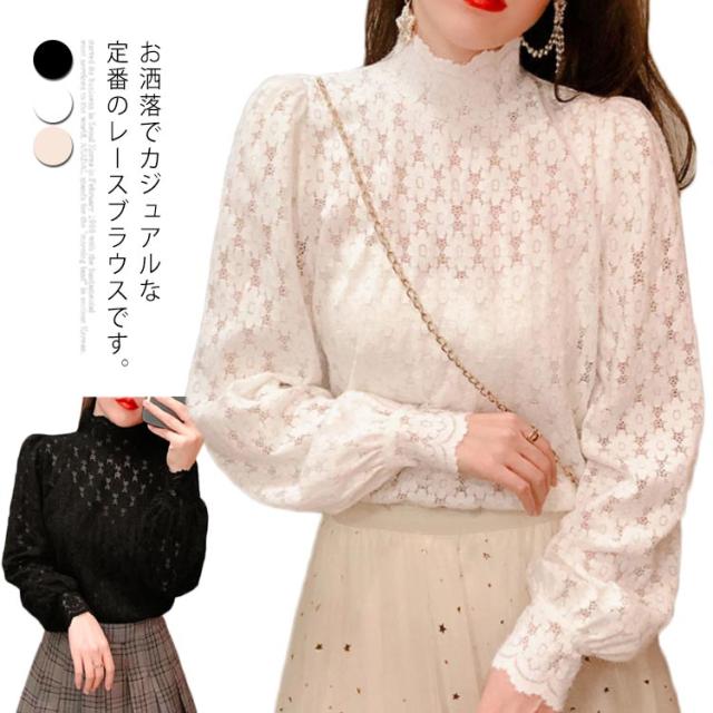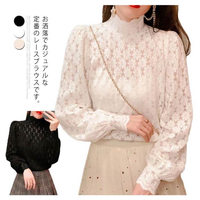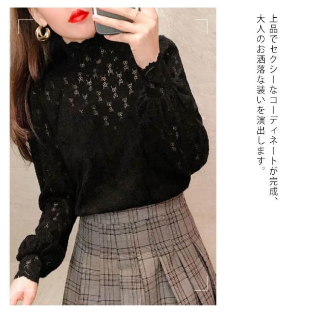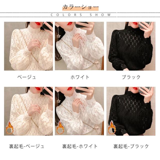ブラウス 総レース 長袖 レディース 裏起毛 トップス ハイネック インナー プルオーバー オフィス 通勤 体型カバー キレイめ お洒落 シンプル 透け感