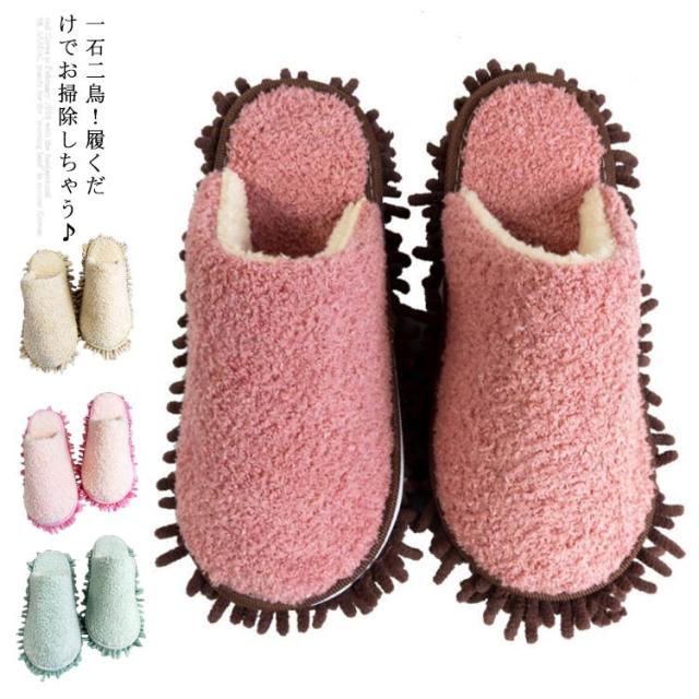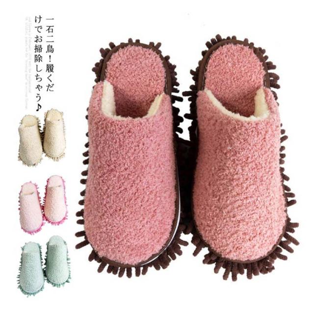 送料無料 モップ スリッパ お掃除スリッパ レディース メンズ 履くモップ 床音対策 静音 ふわふわ 冬 春秋 ルームシューズ 洗える 無地 来客用 便利