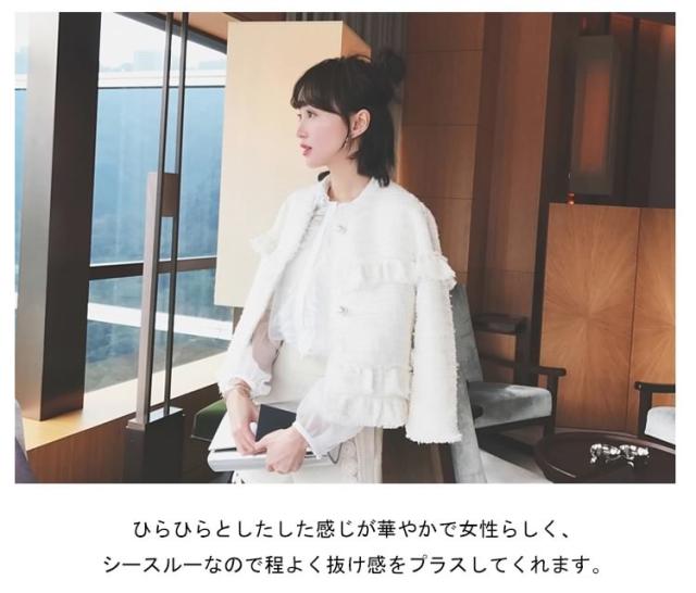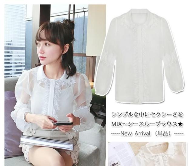 | シンプルな中にセクシーさをMIX?シースルーブラウス★シースルーが抜け感をプラスしてくれて、これからの季節に是非取り入れたいアイテムです。オケージョンアイテムとして着るのはもちろん、普段使いとしてデニムと合わせるのも◎ひらひらとしたした感じが華やかで女性らしく、シースルーなので程よく抜け感をプラスしてくれます。 | |