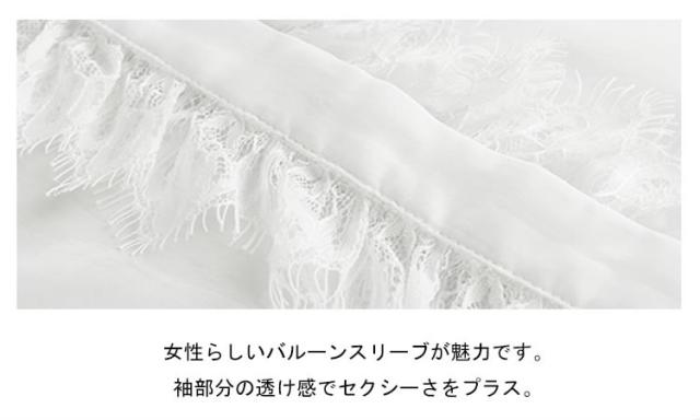 シースルーブラウス シースルー トップス ブラウス オーガンジー シャツ バルーンスリーブ バルーン袖 レース トップス ブラウス 透け レ