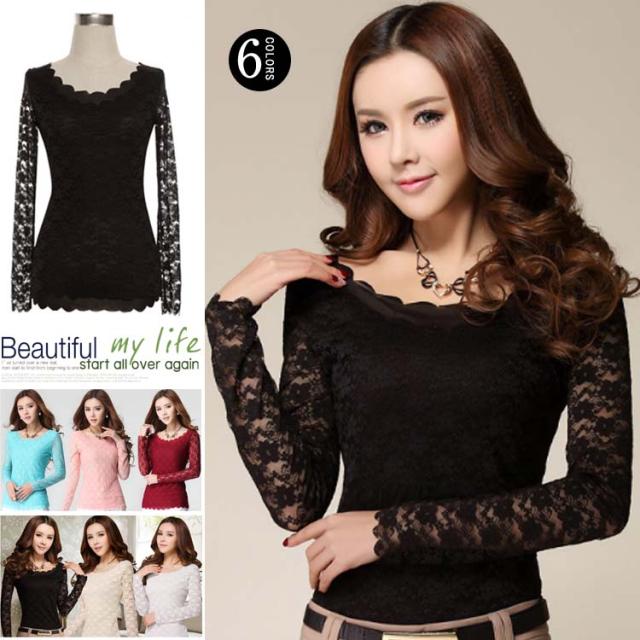 トップス カットソー レース セクシー 総レース シースルー ストレッチ ブラウス 長袖 レディース 大きいサイズ対応