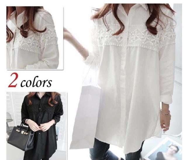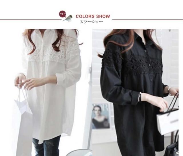 シャツ チュニック チュニックシャツ ブラウス 長袖 レース ワンピース シャツワンピース ミニワンピース トップス 大きいサイズ対応