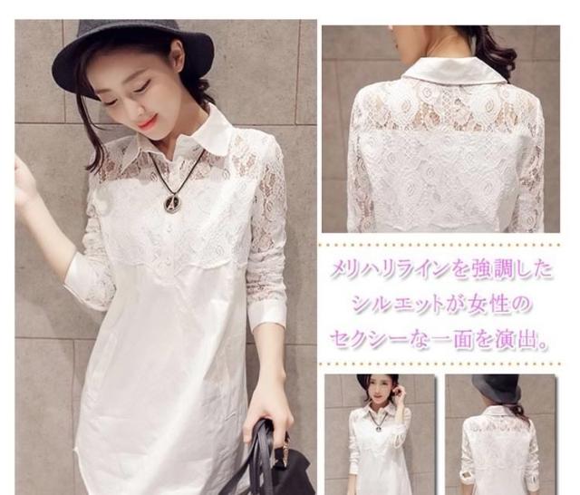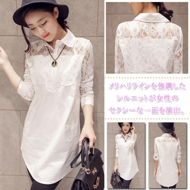 ロングシャツ ホワイトシャツ レディース レース ワンピース