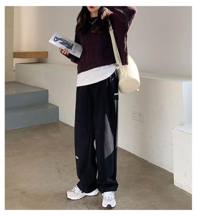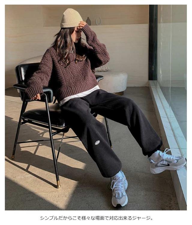 ジョガーパンツ スエットパンツ レディース ワイドパンツ 裏起毛 ボトムス 長ズボン ゆったり ウエストゴム 秋冬物 体型カバー 部屋着 運動着 着痩せ お洒落 シンプル