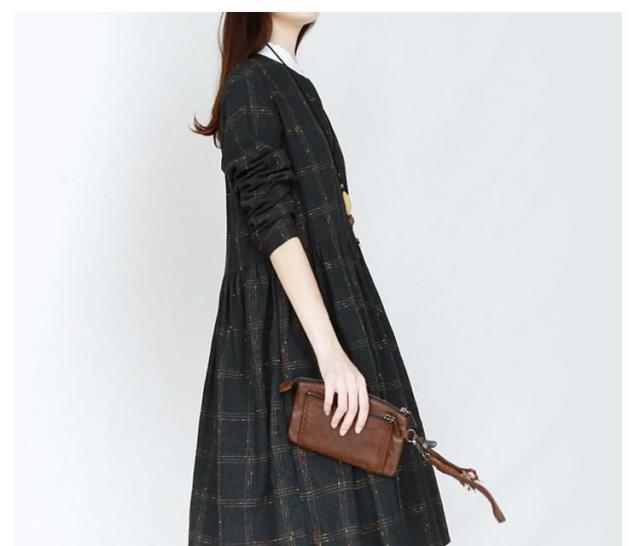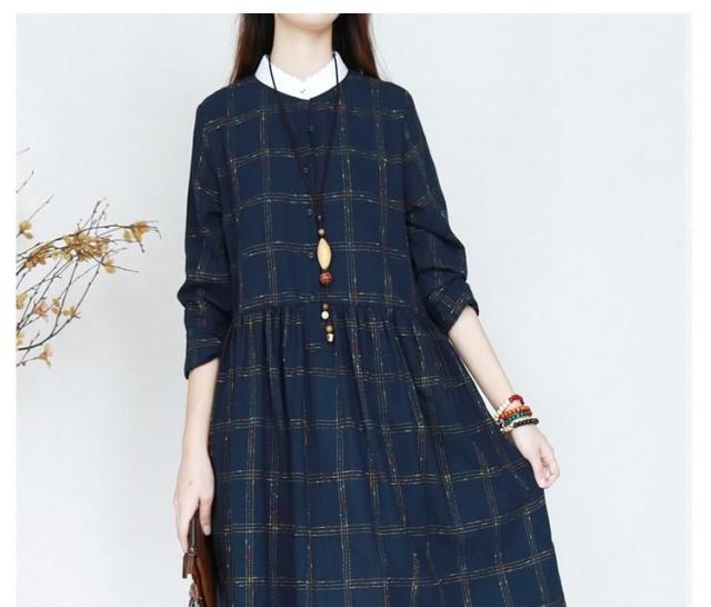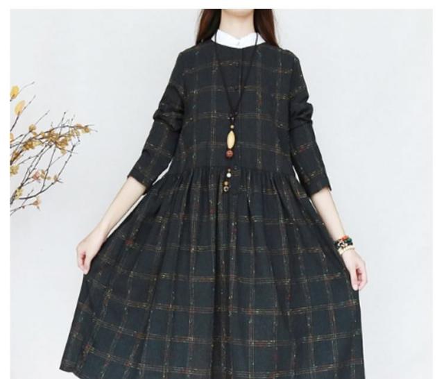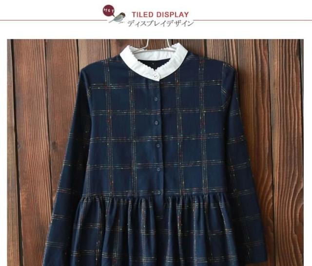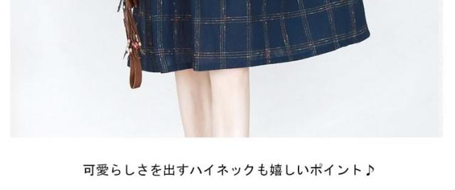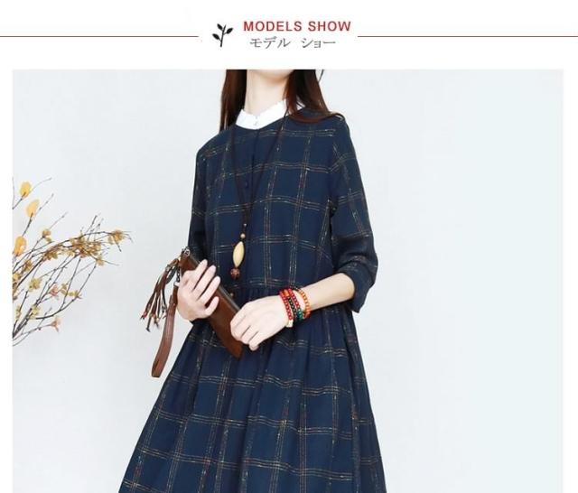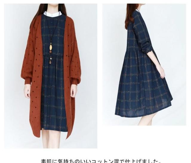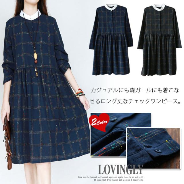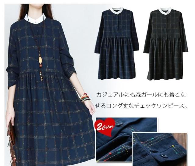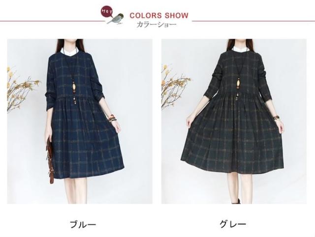 ワンピース チェック レディース チェックワンピース ミディアムワンピース 秋 長袖 体型カバー ゆったり ナチュラル 森ガール ロン